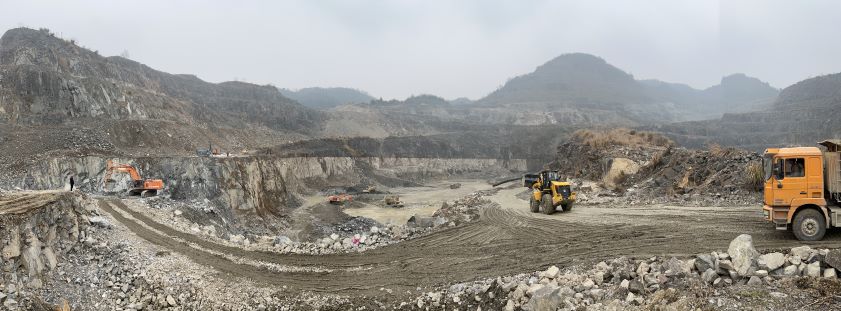 該生態(tài)環(huán)境治理涉及山體開挖不設(shè)采礦權(quán),礦區(qū)內(nèi)設(shè)置破碎加工系統(tǒng)。山體開挖生產(chǎn)規(guī)模400萬噸/年,生產(chǎn)線生產(chǎn)能力為1000t/h。