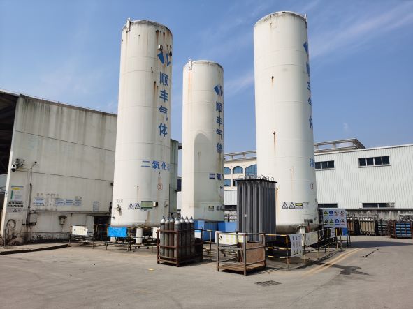 臺州市黃巖順豐氣體有限公司位于臺州市黃巖江口街道道頭村,公司成立于2009年12月,是一家專業(yè)從事氧氣、氮?dú)饪辗稚a(chǎn)及氬氣、二氧化碳充裝的有限責(zé)任公司,公司法定代表人為黃道國。公司擁有KDON-500/1000空分設(shè)備1套和YPON-200/1100液化設(shè)備及氣瓶充裝設(shè)備,生產(chǎn)能力為年產(chǎn)氧氣66萬瓶、氮?dú)?3萬瓶、液氧2260噸、液氮10900噸和年充裝二氧化碳9.5萬瓶、氬氣6萬瓶。公司還設(shè)有100m3液氮貯罐2只(其中1只停用),100m3液氧貯罐1只,50m3液體二氧化碳貯罐2只,50m3液氬貯罐1只,用于儲(chǔ)存公司低溫液體物料。
