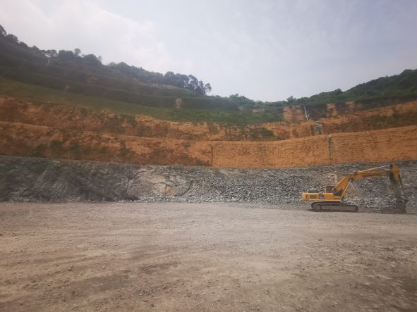 寧?h躍龍街道元峰村下大山建筑用石料(凝灰?guī)r)礦的采礦權(quán)人為寧波眾鼎建材有限公司,于2016年9月8日取得采礦許可證。礦山位于寧?h躍龍街道元峰村,山坡露天開采。該礦山開采礦種為建筑用石料(凝灰?guī)r),采礦許可證核定的生產(chǎn)規(guī)模為38.6萬m3/年,開采深度+219m~+57m,礦區(qū)面積0.1411km2。礦山的開采方式為露天開采,采用自上而下分層、分臺階開采、潛孔鉆穿孔,深孔爆破,挖掘機(jī)、鏟裝機(jī)裝車,汽車運(yùn)輸?shù)牟傻V方法。