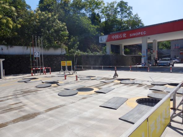 加油站設(shè)置汽油卸油和加油油氣回收系統(tǒng)。加油區(qū)設(shè)置加油罩棚,罩棚為混凝土框架結(jié)構(gòu)罩棚。罩棚下設(shè)置4臺雙油品雙槍自吸式加油機(jī)(汽油加油槍帶油氣回收);埋地油罐區(qū)設(shè)有4只30m³埋地臥式單層鋼制油罐(油罐均為車道罐,設(shè)置在承重防滲罐池內(nèi)),其中2只30m³汽油罐(分別儲存92#汽油和95#汽油),2只30m³柴油罐(儲存0#柴油),折合油罐總?cè)莘e為90m³(柴油罐容積折半計(jì)入),根據(jù)《汽車加油加氣加氫站技術(shù)標(biāo)準(zhǔn)》GB50156-2021的相關(guān)規(guī)定,該加油站為三級加油站。