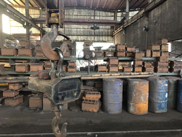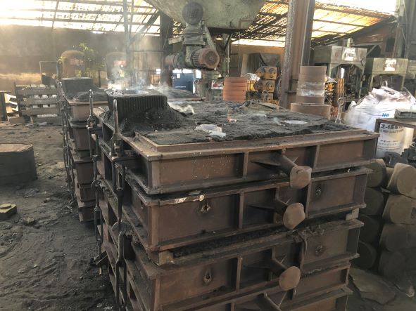 該企業(yè)主要生產(chǎn)鐵鑄件,生產(chǎn)過程中主要涉及制模、熔煉、吊運(yùn)、澆鑄、浸漆、焊接切割等作業(yè),主要生產(chǎn)設(shè)備為造型機(jī)、射芯機(jī)、中頻爐、澆包、拋丸機(jī)、起重機(jī)等,主要生產(chǎn)原料為廢鐵、生鐵、硅鐵、錳鐵等。