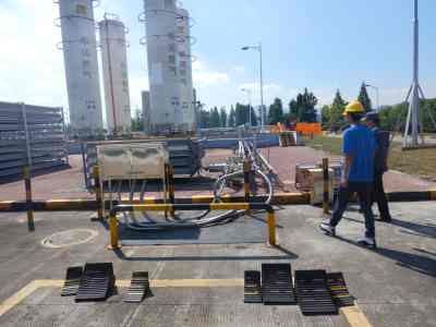 臨海華潤燃?xì)庥邢薰舅鶎贃|渡路氣化站(門站)(以下簡稱東渡路站)位于臨海市大洋街道東渡南路328號(hào),由公司運(yùn)行管理部進(jìn)行管理。該站現(xiàn)有4個(gè)100m³LNG立式低溫儲(chǔ)罐,總存儲(chǔ)量為151.2t,4臺(tái)氣化量5000 m³/h的空溫式氣化器,設(shè)計(jì)最大供氣量為10000 Nm³/h,員工8人。