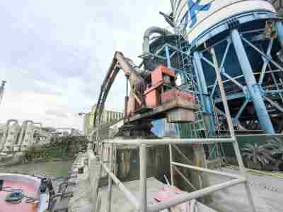 該碼頭3#泊位主要裝卸貨種為粉煤灰和礦粉等散貨,設(shè)置一臺(tái)負(fù)壓卸船機(jī),采用負(fù)壓卸船機(jī)將粉煤灰及礦粉直接打入筒倉,碼頭前沿作業(yè)帶為10m,并在作業(yè)帶后方設(shè)置6個(gè)筒倉,作為碼頭中轉(zhuǎn)區(qū)。