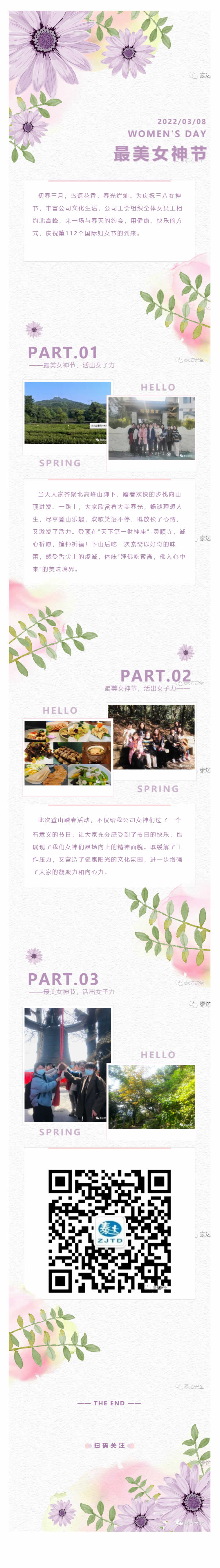 初春三月,鳥語花香,春光爛燦。為慶祝三八女神節(jié),豐富公司文化生活,公司工會(huì)組織全體女員工相約北高峰,來一場(chǎng)與春天的約會(huì),用健康、快樂的方式,慶祝第112個(gè)國際婦女節(jié)的到來。